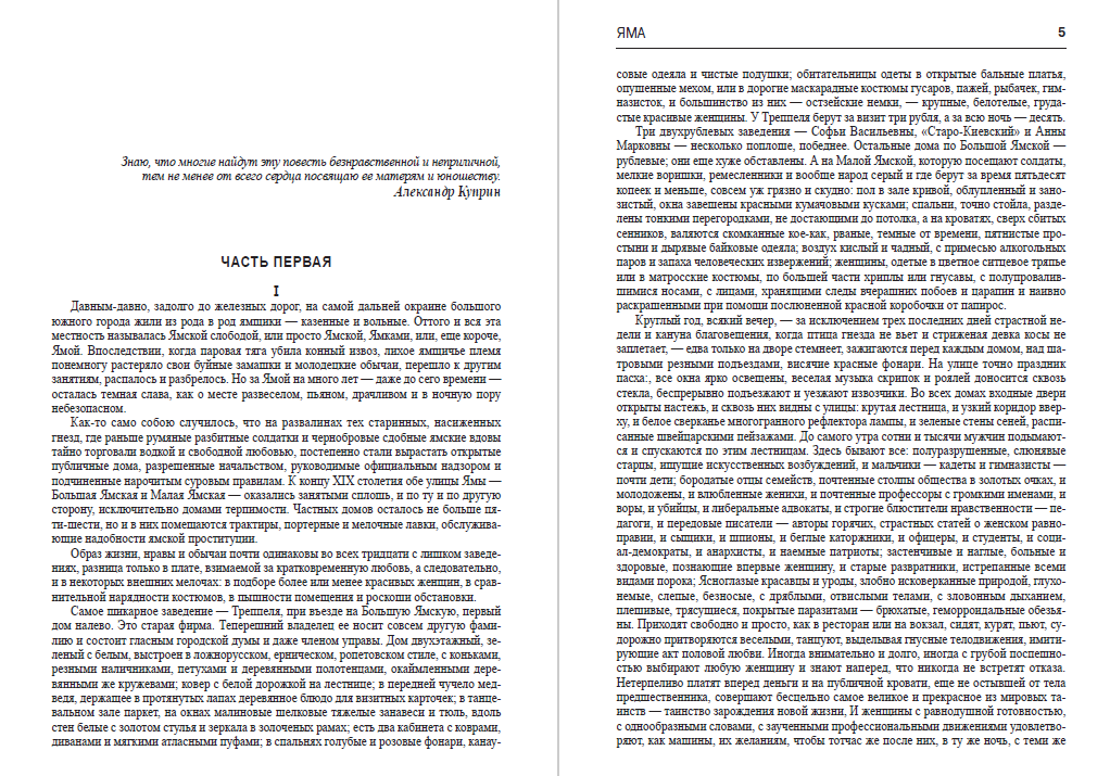 «Яма» – самое скандальное произведение гениального рассказчика Александра Куприна. Автор решил без прикрас показать жизнь бесправных и несчастных существ – девушек легкого поведения небольшого города в Ямской слободе. Их беспросветное существование и безвыходность заставляют задуматься о причинах, породивших это явление в обществе.