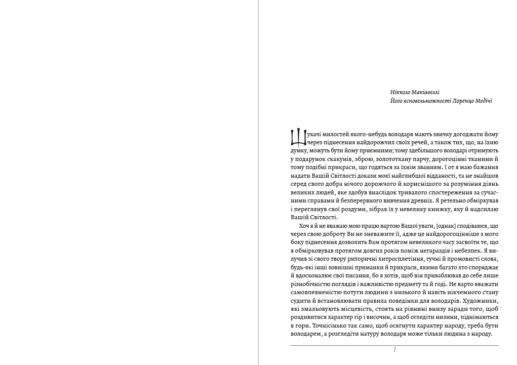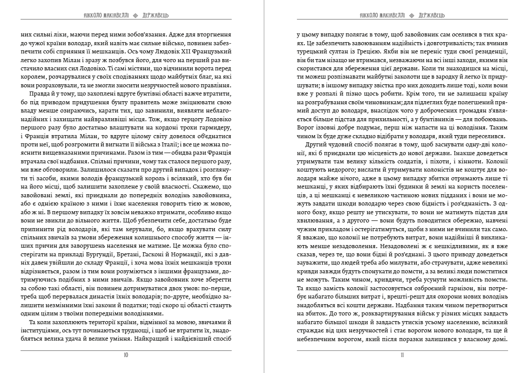 Нікколо Макіавеллі — відомий італійський філософ і політик епохи Відродження, обіймав у Флоренції посаду державного секретаря та відповідав за дипломатичні зв’язки республіки. Його трактат «Про військове мистецтво» — єдиний політичний твір Макіавеллі, опублікований за життя. Ця праця — одна з кращих книг про військову справу, нарівні з «Записками про галльську війну» Гая Юлія Цезаря і «Мистецтвом війни» Сунь Цзи. Та найбільшої, особливої слави зажив Макіавеллі своїм знаменитим твором «Державець, в якому він зробив спробу сформулювати загальні закони політичного життя, виклав суть «ремесла політика», а також визначити роль і місце державця в Європі та Італії XVI століття. Переклад українською Ярослава Мишанича.