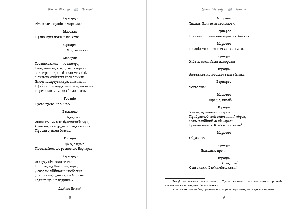 Трагедія «Гамлет» – один з найвідоміших творів геніального драматурга Вільяма Шекспіра (англ. William Shakespeare, 1564-1616). Головному герою являється привид батька, який розповідає про страшний злочин брата. Принц Гамлет вирішує поквитатися з вбивцею… Твір є обов’язковою частиною шкільної програми. Вільям Шекспір – автор всесвітньо відомих сонетів, п’єс «Ромео і Джульєтта», «Гамлет», «Макбет» і «Отелло», а також чудових комедій «Дванадцята ніч, або Що завгодно?», «Сон в літню ніч», «Безплідні зусилля любові», «Віндзорські насмішниці», «Два веронці» і «Як вам це сподобається». Творчість великого англійського поета вже кілька століть підкорює світові театральні сцени: за кількістю зіграних п’єс Вільям Шекспір займає перше місце.