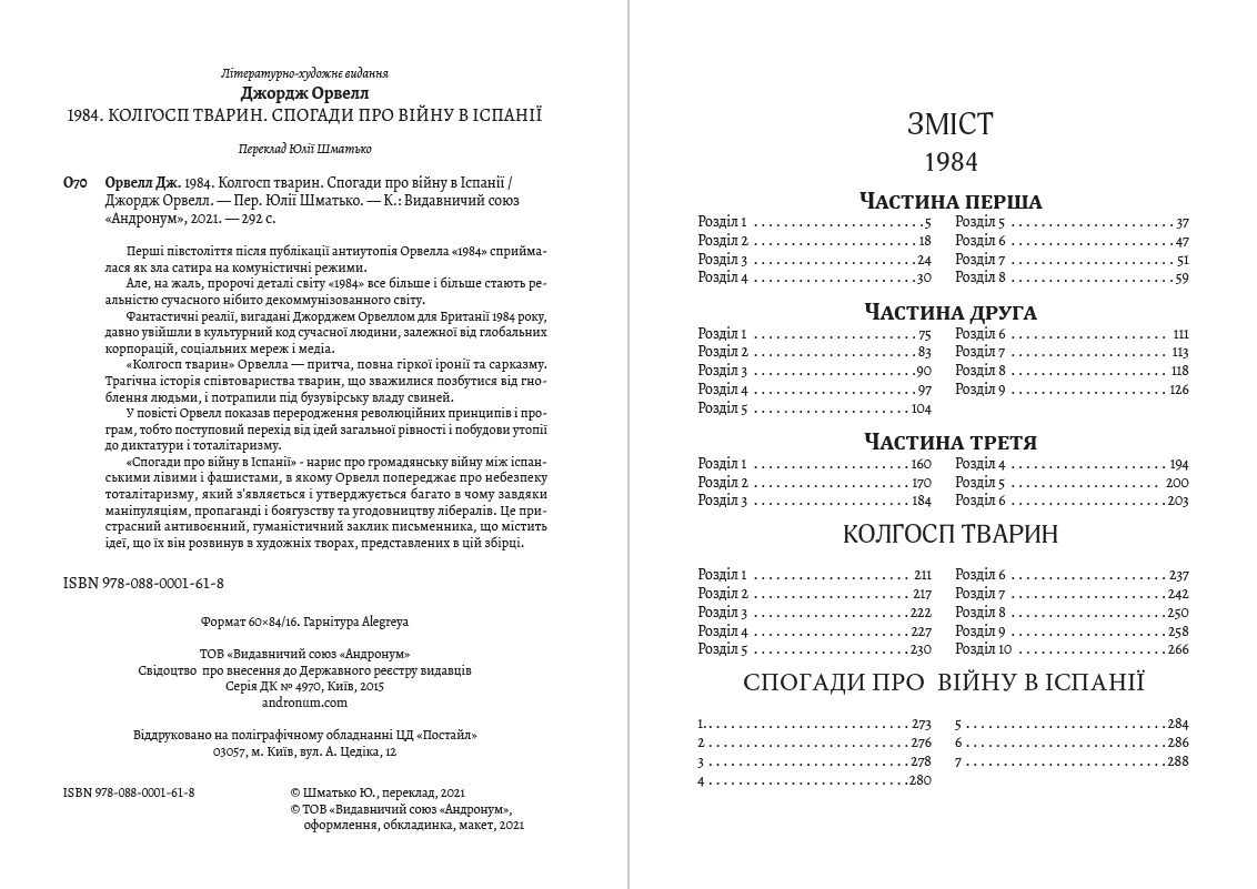 «Спогади про війну в Іспанії» – нарис про громадянську війну між іспанськими лівими і фашистами, в якому Орвелл попереджає про небезпеку тоталітаризму, який з’являється і утверджується багато в чому завдяки маніпуляціям, пропаганді і боягузству та угодовництву лібералів. Це пристрасний антивоєнний, гуманістичний заклик письменника, що містить ідеї, що їх він розвинув в художніх творах, представлених в цій збірці.