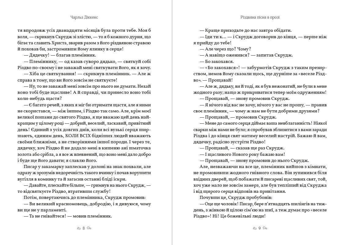 Один із найвідоміших англійських письменників XIX ст. Чарльз Діккенс із співчуттям ставився до бідних людей. Своїми творами він сподівався звернути увагу багатих на несправедливість, яка існує в суспільстві, та перевиховати їх. Цій темі присвячена його повість «Різдвяна пісня у прозі». Переклад Ольги Косач-Кривинюк.